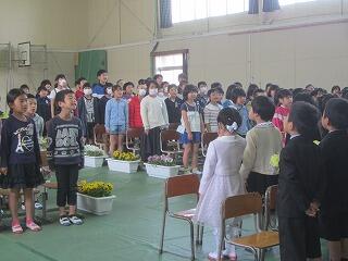 『在校生から6年生へのメッセージのプレゼント。そして今度は6年生から在校生にお礼のメッセージをプレゼントしました。』