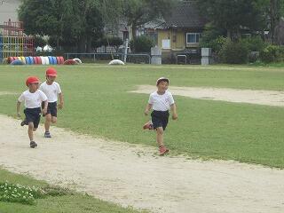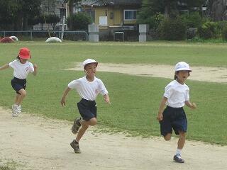 『1年生の徒競走です。まっすぐ走るのは難しいと思うのですが、川島っ子は皆まっすぐにそして力強く走ることができます。』