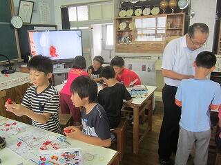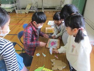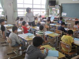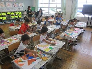 午前中1年生の教室をのぞいてみると、図工の作品づくりに取り組んでいました。1年前は入学予定児童で来校した1年生も今すくすくと成長しています。