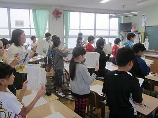 本日外国語活動サポーターの方が来校されました。週あたりの時間数は少ない活動ですが、本校の3・4年生は毎回楽しく活動しています。今日も元気一杯でした。