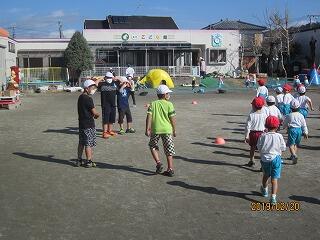 『最後は昔の遊びクラブ。今日はお宝陣取り?ゲームをしていました。ボールは取ったけど、自分の陣地に戻るのが・・・・。』