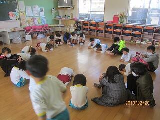 『昔なつかしい?ハンカチ落としでーす。本気にならないように負けないように、これがむずかしいー!みんなに当たるように気も遣うのでーす!』