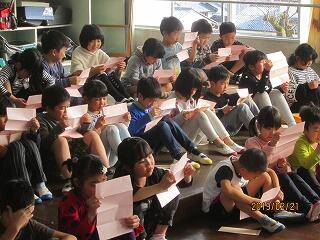 『4年生は将来就きたい仕事について詳しく書いた作文を一人一人発表していました。最後は保護者の方から一人一人手紙を受け取ったようです。』