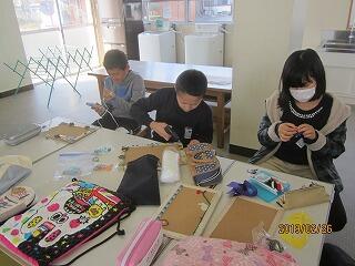 『こちらは家庭科クラブ。折り紙や、小物、伝言ボード等を作っていました。グルーガンでヤケドしないでよ!あ、熱!大丈夫?』