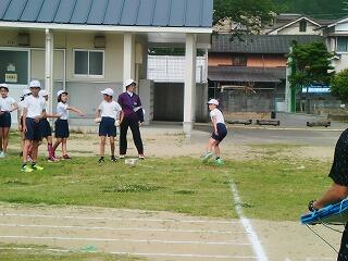 『苦手な子どもが多いソフトボール投げ。角度と手の振りに気を付けてエイ!』