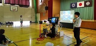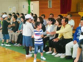 『2年生はジャンケン列車で仲間づくりゲームです。楽しそうに活動していました。』