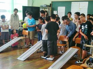 『5年生は自分たちで考えて準備したボウリングゲームです。とても楽しそうでした。』