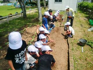『小石は全部取ってくださいね!ハーイ、頑張ってまーす!大きくたくさん育ってね!』