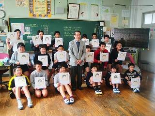 これは子どもたちに内緒で、一人一人の写真をもとに2学期から描かれていたものです。昼休みの思いがけないプレゼントに子どもたちは大喜びでした。1学期もいただいており、今回2回目のプレゼントでした。ありがとうございました。