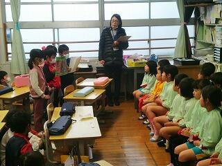 『1年生で学習する教科、行事や生活の様子を説明しました。絵を使いながら、とても上手に説明していました。』