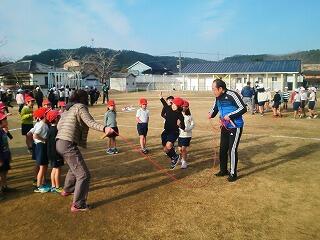 『長縄で連続跳びに挑戦中の2年生も楽しそうでした。みんな!足下をしっかり確認して!』