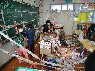 ので行ってみると、図工の授業「つないで・つるして」で教室がすご