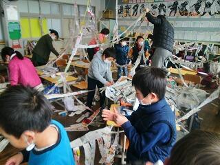 いことになっていました。それぞれが引き裂いたチラシ類をつない