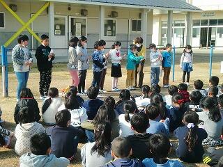 『6年生が代表で作文を読み、各学年の代表児童が感謝の作文を渡しました。』