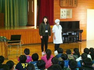 『最後に栄養教諭の先生から正しい給食着の着方についてお話がありました。』
