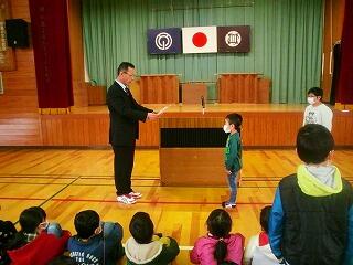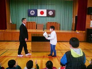 3校時の終業式では、1年生・3年生・5年生の代表児童
