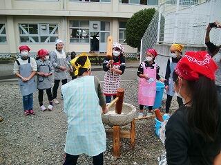 今日は5年生がかかわった米作りのまとめで『もちつき』を