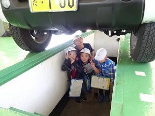『ここは?自動車整備工場です。車の下から失礼しまーす。』