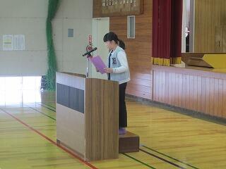 『代表で新5年生が作文を発表しました。4つの目標に向かって頑張ってください。』