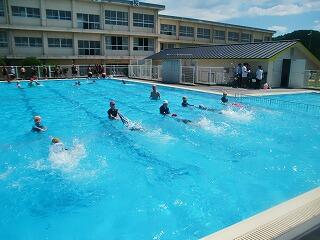 今日は素晴らしい青空のもと、2校時5・6年生の水泳授業