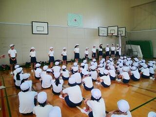 今日は引き続き全校体育でしたが、運動場の状態が万全ではなかったため、行進の指導や開閉会式の流れについて説明がありました。