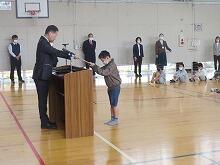 作文発表の代表は1年生の古小路由之介さんでした。由之介さんが1年生でがんばったのは、「うんていが最後までできるようになったこと」「地域の方へ気持ちのよいあいさつができたこと」「おばあちゃんとぎょうざづくりをしたこと」でした。由之介さんの作文を聞いていたみんなも、きっと自分の1年間のあゆみをふり返ることができたのではないでしょうか。