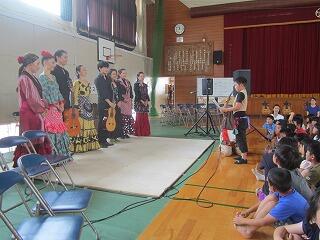 内容は『フラメンコ』でしたが、ただ鑑賞するだけではなく、衣装を身に付けて参加したりギターを弾いたりとワークショップ型の鑑賞教室だったようで、子どもたちも先生方も『オ・レ!』と楽しく参加することができたようでした。