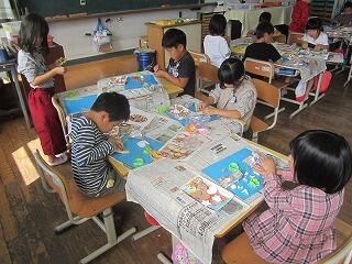 午前中1年生の教室をのぞいてみると、図工の作品づくりに取り組んでいました。1年前は入学予定児童で来校した1年生も今すくすくと成長しています。