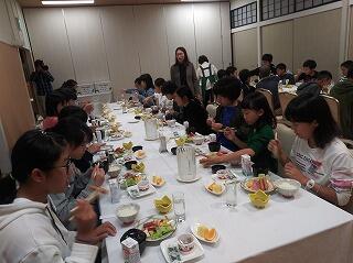 今朝はまだ眠たそうな人もいたようですが、全員しっかりと朝食をとり、予定どおりホテルを出発したそうです。