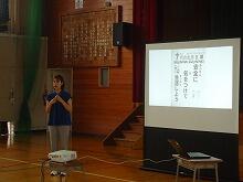 7月の生活目標は、「安全に気をつけて生活しよう」です。担当の山下先生から、廊下歩行で気をつけることについてお話がありました。廊下の真ん中にある点(マーク)を考え、右側を歩くこと、曲がり角や教室から外に出るところでは、とび出さないように気をつけること、階段を上がるときは一段とばしをしないこと。どれも自分や回りのお友達の安全を守るために大切です。川島小には、「はさみ」の合い言葉があります。「は→走らず」、「さ→さわがず」、「み→みぎがわよ」この合い言葉を常に頭に置いて、安全な廊下歩行ができるといいです。