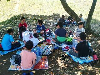 『3・4年生は土々呂海浜公園に到着後すぐにお弁当です。』