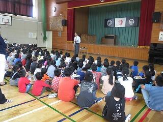 今朝は全校朝会があり、校長の話に続いて、今月担当と