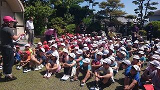 5・6年生は城山公園まで徒歩で往復。3・4年生はバスで移