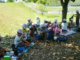 『3・4年生は土々呂海浜公園に到着後すぐにお弁当です。』