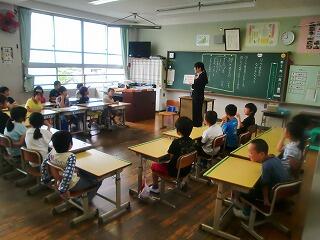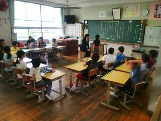 数人の先生方が見られる中、子どもたちはしっかりと授業