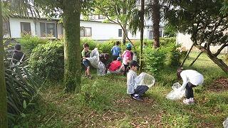 『さあ、取った草はこの袋に入れて!ドンドン集めてね!』