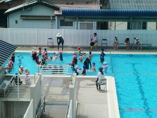 『1・2年生は小プールで楽しそうに授業を行っていました。天気もいいし、気持ちよさそうです。』