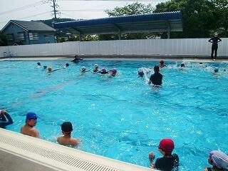 今日金曜日は絶好のプール日和です。そんな中、午前中は1・2年生が、午後は3・4年生がプールに入り、気持ちよさそうに歓声をあげながら授業に取り組んでいました。