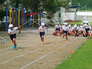 今夏の酷暑の影響で、先週は運動会の練習を控えていましたが、きれいに整備された運動場で今日から練習がスタートしました。今日の1時間目、3・4年生が赤白の団分けをするための走力測定を行っていました。軽く走ってアップしたあと、みんなしっかりした走りで最後まで頑張っていました。