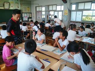 再来年度から完全実施となる外国語の授業ですが、今年度から、5・6年生がこれまでの年間35時間から50時間に、3・4年生が、新たに外国語活動として年間15時間実施することになっています。
