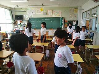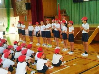 今日は引き続き全校体育でしたが、運動場の状態が万全ではなかったため、行進の指導や開閉会式の流れについて説明がありました。
