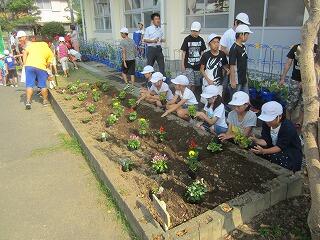 今朝は緑化活動で、学級園に花の苗を植えました。先週から準備はできていたので、今回は苗を植える作業と水やりでした。本校の学級園は低・中・高の2学年ごとに分かれています。草取りや水やり等のお世話をしっかりお願いしますよ。