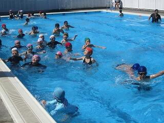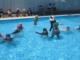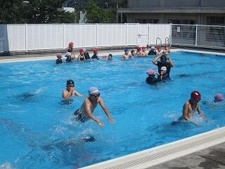 『5・6年生は大プールで水泳の授業。クロールで25㍍を数本泳いでいました。』