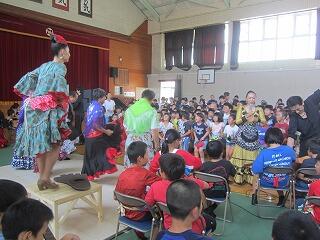 内容は『フラメンコ』でしたが、ただ鑑賞するだけではなく、衣装を身に付けて参加したりギターを弾いたりとワークショップ型の鑑賞教室だったようで、子どもたちも先生方も『オ・レ!』と楽しく参加することができたようでした。