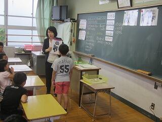 今年は4年生の学級の国語科で実施できることになりました。本日はその1回目ということで担当の指導主事の先生に来校いただきました。