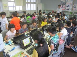 『3年生はパソコンソフトを使って音楽の学習です。港小のお友達にいろいろと教えてもらいました。』