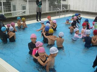 『水になれたら次はプールに入りますよ。そうそう、後ろ向きで静かに入ってくださいね。おじゃましまんのやわ!????』