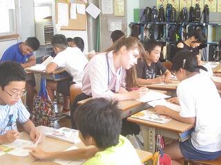 一方5・6年生は外国語の授業でALTの方と一緒に活動をしました。2学期から新しく来られた先生とも随分慣れて来たようです。