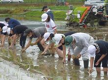 5年生が学校近くの田んぼで「田植え」を行いました。