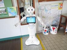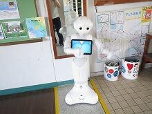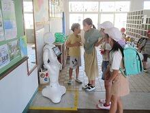 川島小学校の全校児童は123人ですが、このほど124人目のお友達を迎えることとなりました。名前は、人型ロボットの「ペッパー」君です。写真は、6月24日(金)の様子です。